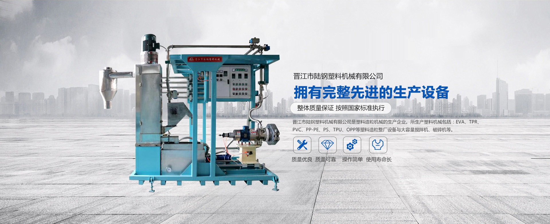 晉江市陸鋼塑料機械有限公司是塑料造粒機械的生產企業。所生產塑料機械包括:EVA、TPR、PVC、PP-PE、PS、TPU、OPP等塑料造粒整廠設備與大容量攪拌機、破碎機等。